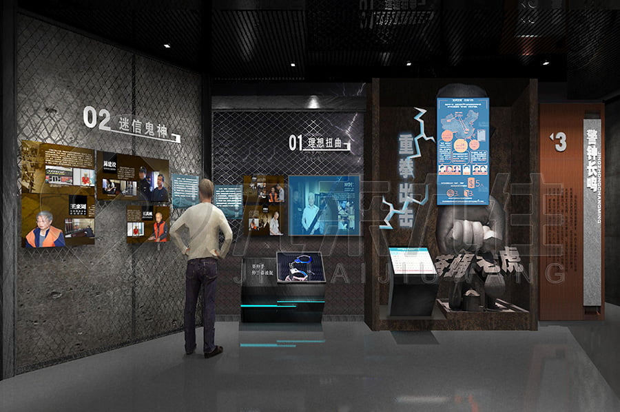 第二部分是“公安法治”,展示了中國公安工作的法律依據(jù)和原則,以及公安機關(guān)在維護社會秩序、預(yù)防和打擊犯罪、保護人權(quán)等方面的主要職能和職責(zé)。該部分利用多媒體設(shè)備如互動觸摸屏、數(shù)字沙盤、全息投影等,展示了涉及公安工作的各種案例和場景,如交通管理、刑事偵查、反恐怖主義、網(wǎng)絡(luò)安全等。該部分還提供了讓參觀者通過模擬設(shè)備或VR設(shè)備體驗一些公安工作流程的機會。該部分的設(shè)計意圖是增強公安干警和市民對公安工作的理解和認同,提高遵守法律法規(guī)的意識和尊重。